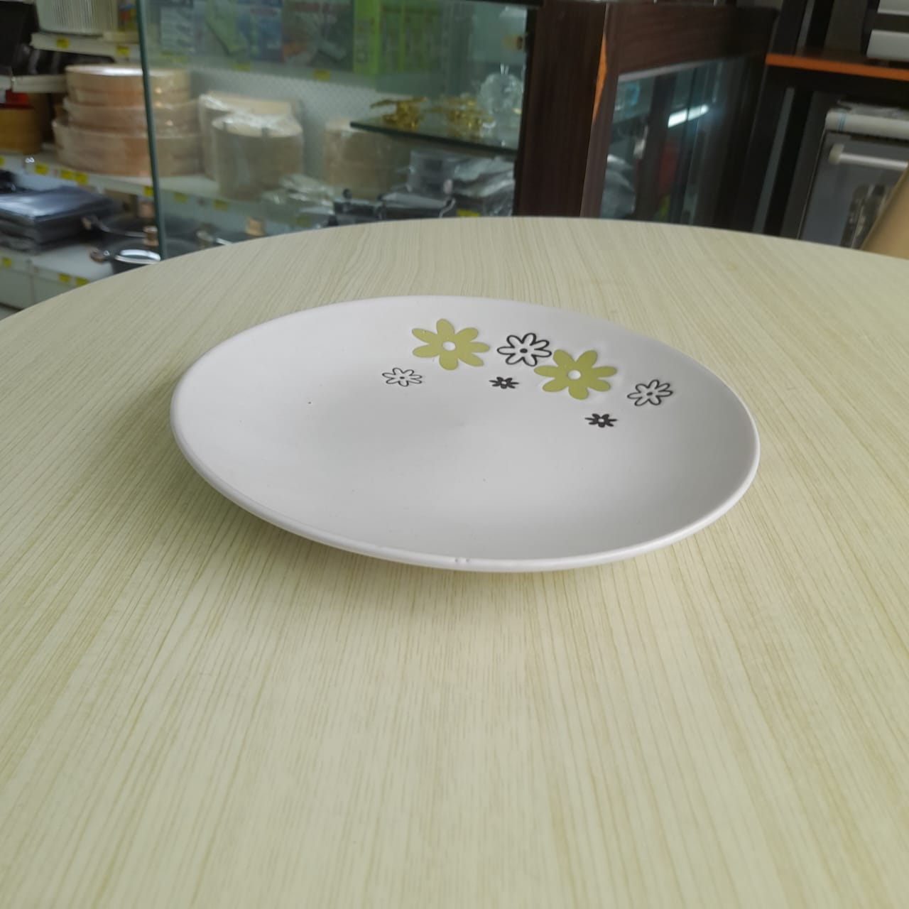 Kawaii Porcelen 0922-B Yoshoku Coupe Plate 22 cm (Green w/ Dandelion Flowers)