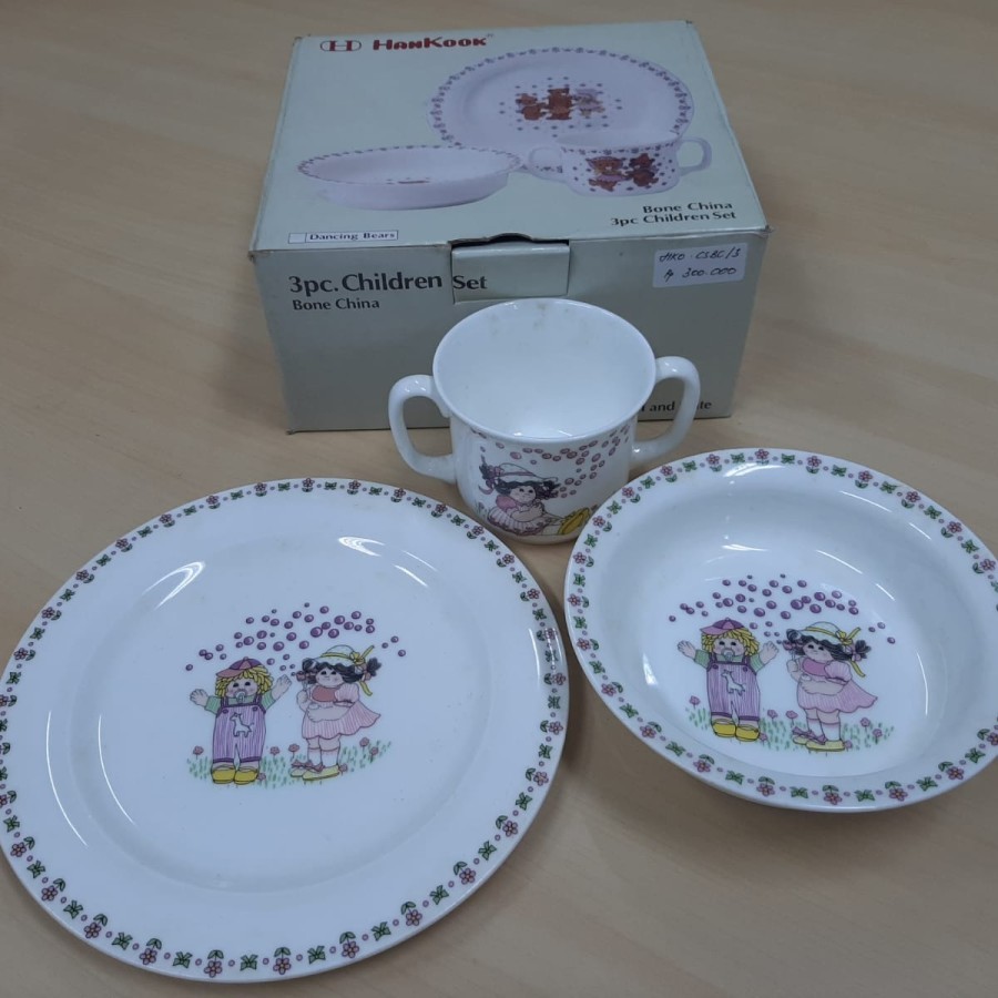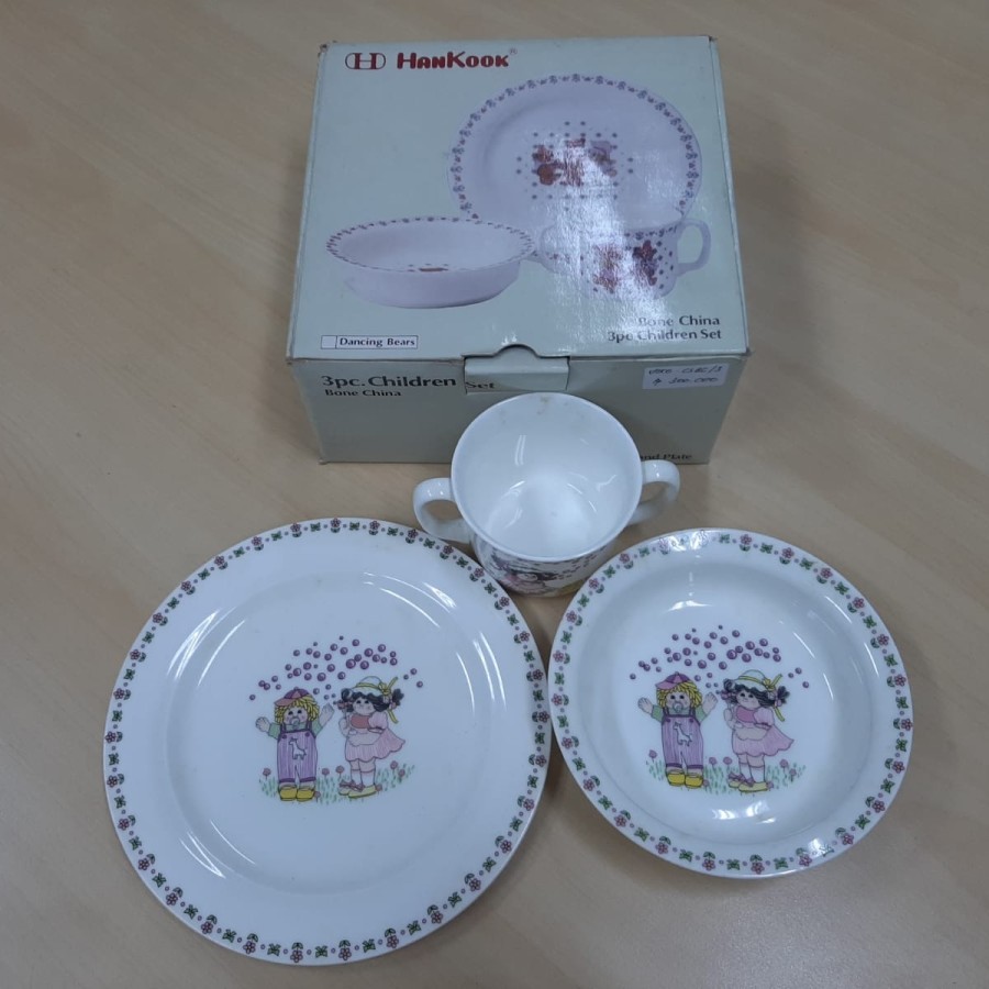 HANKOOK Children Set Bone China "Dancing Bears" tempat makan set isi 3 pcs